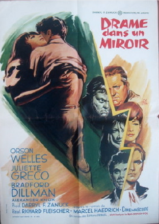 Speaking of Boris Grinsson, here’s two more illustrations of his work on the French one-sheets for 1960’s Crack In The Mirror, starring Orson Welles.